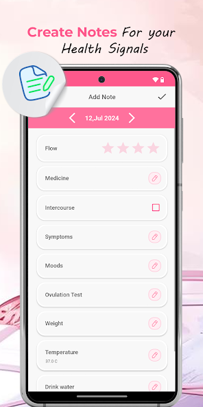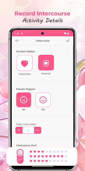 With our app, you can enter daily notes and track symptoms, moods, intercourse, period flow, results of an ovulation test, and a pregnancy test.