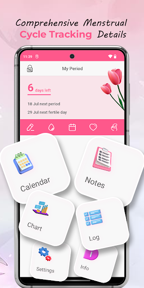 • Keep track of your menstrual cycles with Period Calendar. It tracks your periods, cycles, ovulation, and the chance of conception.