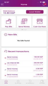 WE PAY customers can also benefit from the application to manage their wallets (change language & change PIN) as well as inquiring about their wallets’ balance and checking their transactions history.