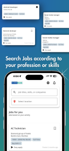 Search jobs using filters like job title, skills, location, and experience