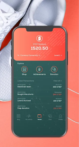 Rewarding – Converting your steps into STEP coins.