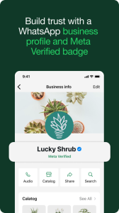 • Build relationships and trust. With a professional business profile on a secure platform, you build credibility and trust with customers. Use the app to provide more responsive customer support and build long-term loyalty. Subscribe to Meta Verified*** to reinforce your authenticity.