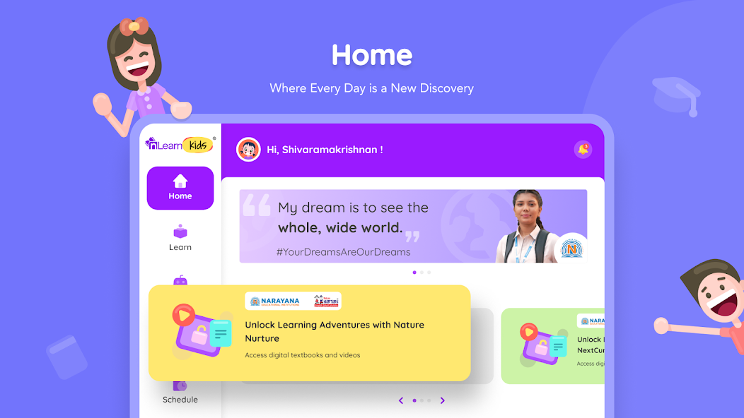 Embark on educational escapades with nLearn Kids, a captivating and enjoyable learning journey tailored for the curious minds of K-5 Narayana Young Minds! nLearn Kids combines delightful experiences with meaningful education, allowing exploration, interaction, and development all while thoroughly enjoying the process!