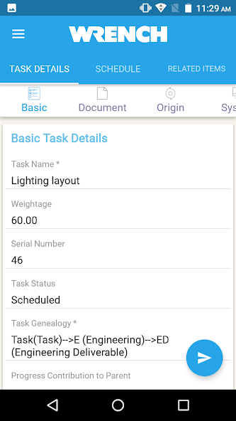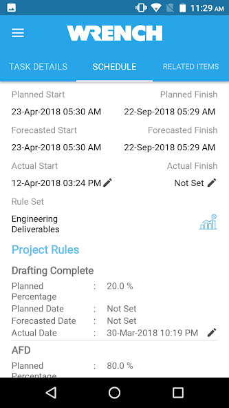 Modern engineering projects, especially the infrastructure and construction projects have distributed and simultaneous project execution, involving separate project teams working across different geographies. This adds challenges in letting people access project information from a variety of devices such as desktop PCs, mobile devices, and even the devices of the IOT class. WRENCH Mobile App is intended to be used on various hand-held devices in a distributed project management environment.