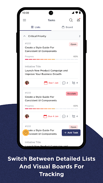 ? Task List – Switch between a detailed list and a visual board to track progress effortlessly.