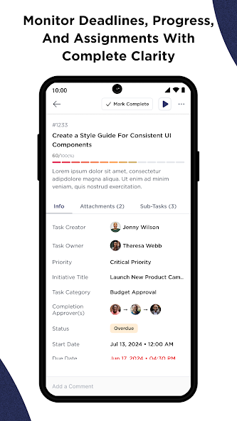 ? Task Details – View task details, track deadlines, monitor progress, and review assignments in one place.