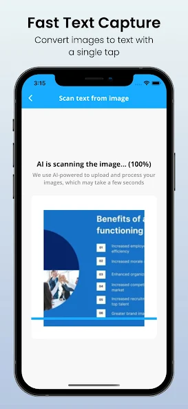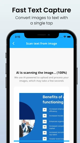 Text Scanner AI is an indispensable tool for accurately and efficiently transforming physical documents into digitized text. Using advanced artificial intelligence and optical character recognition technologies, this user-friendly app can scan any type of document, be it receipts, book pages, or anything else, all with a few simple taps on your device.