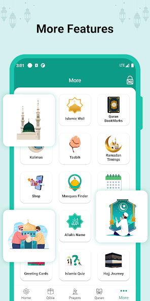 - Provide an accurate Qibla direction with a compass pointing to the Makkah location