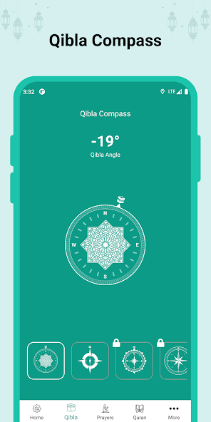 - Use the compass to know in which direction to pray