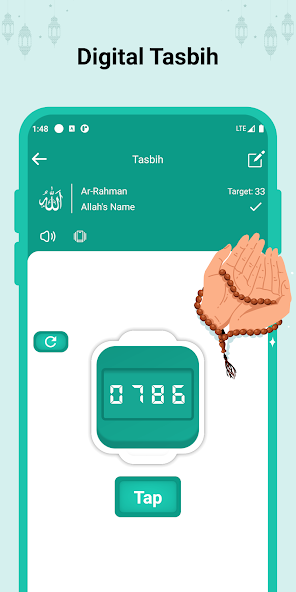 - Tasbih to count your dhikr or recite Allah's name with a history of Tasbih you recited in the past.