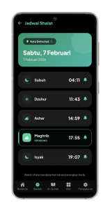 2. **Jadwal Sholat otomatis berdasarkan lokasi**
