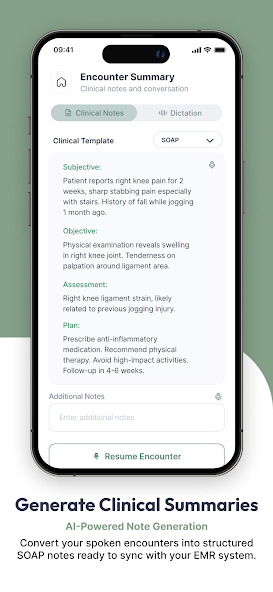 Generates concise, well-organized summaries and SOAP-style notes tailored to clinical needs.
