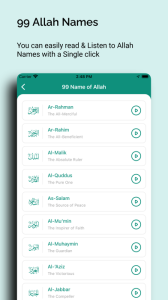 - Read all 99 names in Arabic and English with meanings.