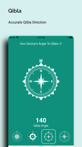 - Accurate Qibla direction with a compass pointing towards Makkah.