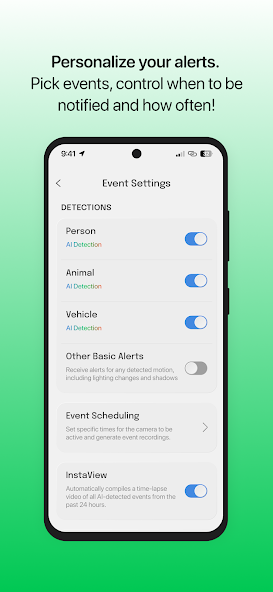 Our intelligent system identifies and tags people, vehicles, animals, and motion events—sending you only what matters.