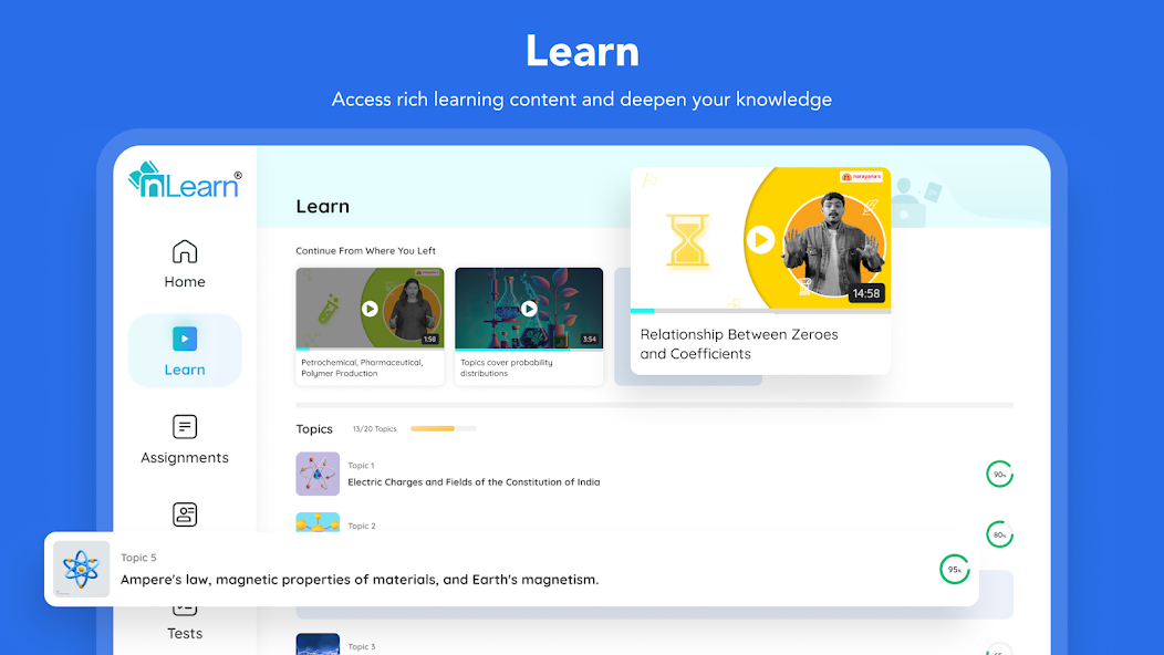 At nLearn, we prioritize student experience with personalized learning. Our platform offers high-quality animated videos simplifying complex concepts and an extensive question bank for board and competitive exam prep.