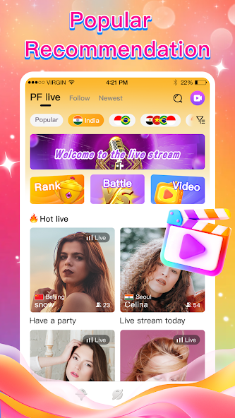 PF Live is a vibrant live streaming app that blends entertainment, real-time interaction, and social connection. Enjoy captivating broadcasts from talented creators—whether they’re showcasing performances, sharing daily moments, or just chatting with fans. Interact instantly through comments, virtual gifts, and voice calls, all in a lively and welcoming community. Join PF Live today and discover your next favorite stream!