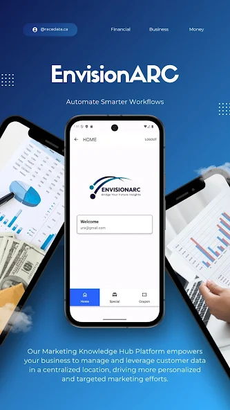 Supports mock login, message, and campaign preview screens