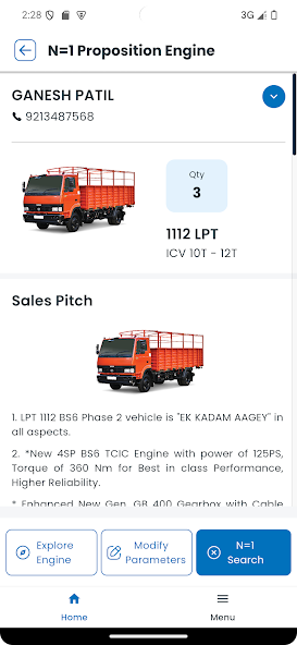 This is an app for Tata Motors Commercial vehicles sales team which offers following functionalities: