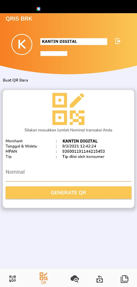 BRKS QRIS Merchant Mobile Service is an application used by QRIS Merchant Bank Riau Kepri Syariah with the following features: