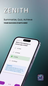 Meet Zenith, the AI-powered learning companion for students at any level. Summarize documents instantly, generate and take quizzes, earn badges, and discover job opportunities – all in one place.